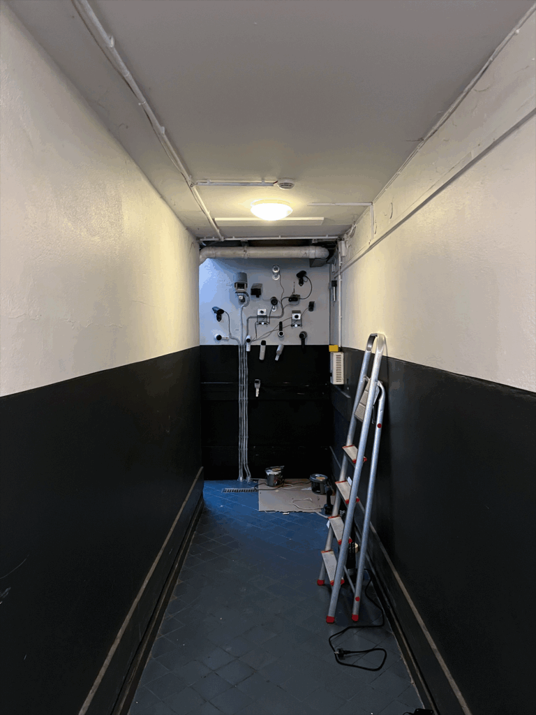 Für ein Kurzfilmprojekt sollte aus einem Hausflur eine Sackgasse konstruiert werden, an deren Ende der Protagonist mit einer Vielzahl von Überwachungskameras konfrontiert wird.