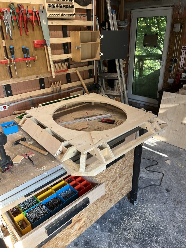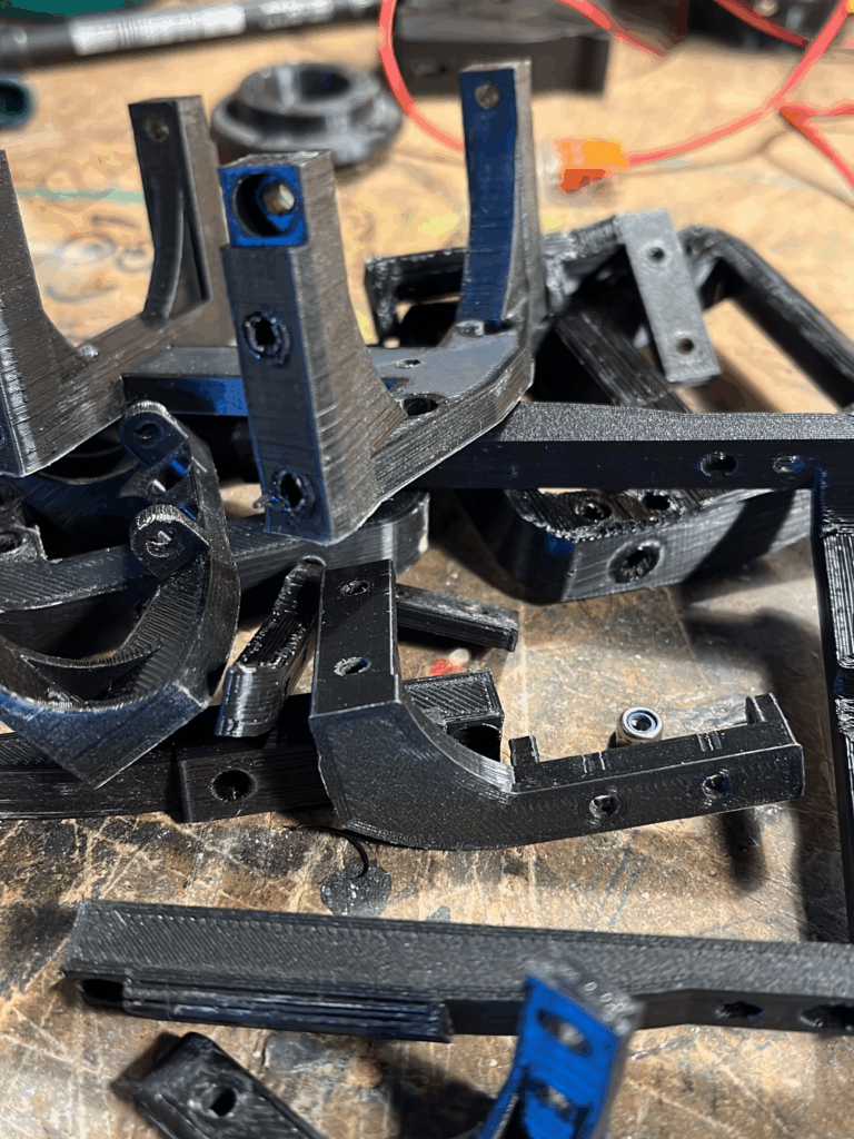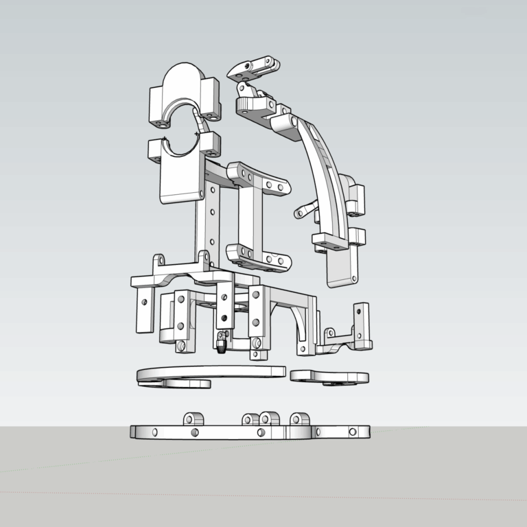 Das Mechanische Herzstück bildet eine 3d gedruckte Struktur aus verschraubbaren Elementen mit unterschiedlichen Funktionen.